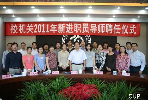 9月9日上午,校机关在办公楼第三会议室举行新进职员导师聘任仪式,8位新进职员和他们的导师参加了仪式。党委副书记刚文哲,党、校办主任陈崇河、校工会主席王仲民、组织部副部长陈晖出席了此次活动。