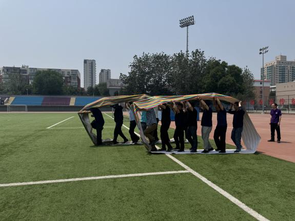 本次趣味运动会设置了“鼓动人心”“无敌风火轮”和“能量传输”三个集体项目,每一项都寓运动于娱乐、寓协作于竞赛。“鼓动人心”比赛中,队员们围站鼓旁,众手牵绳击鼓颠球——节奏感与默契度被瞬间点燃,鼓面上的球一次次跳跃,高涨的欢呼声令现场气氛不断升温。紧随其后的“无敌风火轮”将团队配合推向高潮,参赛小组踏入由帆布卷成的“风火轮”内,步调一致、齐心奔跑。压轴项目“能量传输”同样精彩,教职工们手持半管接力传球,既拼速度也考验精准度,一旦小球平稳滑入下一段轨道,队友之间的击掌与喝彩瞬间让赛场成了欢乐的海洋。