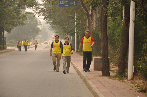 名后勤管理处同事边走边欣赏路边的金秋景色,共同走完了全程