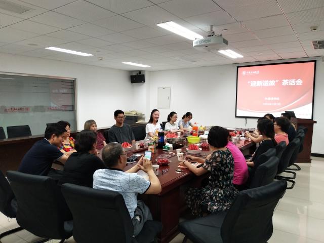 7月4日下午14:30,外国语学院在主楼A724召开欢送和迎接同事和助管茶话会,近二十名教职工参加了此次活动。座谈会由院办和工会组织,院办主任吴冬红主持,分党委书记李玉财,院长赵秀凤、副院长徐方富、副书记邓听、团委书记谌丛和部分教师代表出席了活动。