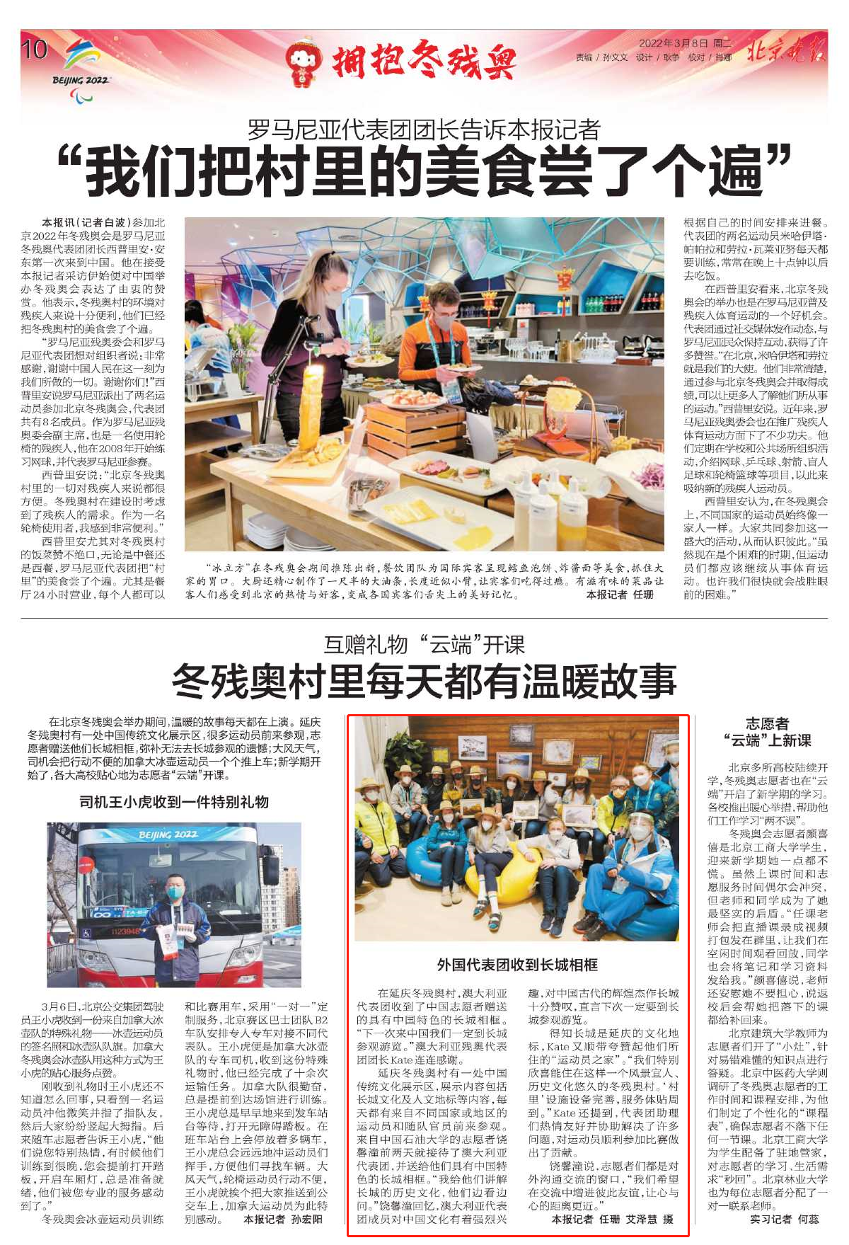 北京晚报:互赠礼物“云端”开课 冬残奥村里每天都有温暖故事
