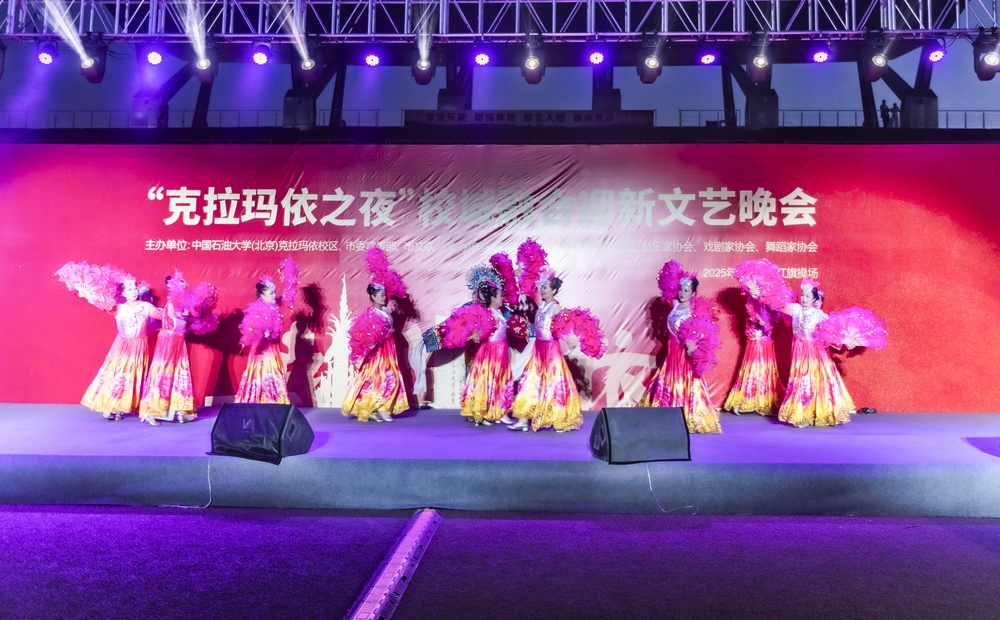 8月28日晚,“克拉玛依之夜”校城融合迎新文艺晚会在克拉玛依校区红旗操场举行,克拉玛依市民、大中小学师生及新生家长齐聚现场,共同感受石油之城的文艺魅力。晚会在管弦乐《我为祖国献石油》中开场,点燃气氛;中石大1998级校友刘文静一曲《如愿》致敬奋斗岁月,唱出家国情怀;《舞乐新疆》演员们身着舞裙,脚步轻快,将天山脚下的鲜活风情尽数展现;《我把新疆唱给你听》悠扬绵长,唱出新疆的辽阔与壮美;《我在天山南北等你来》歌声婉转,传递着新疆人民的好客与热情;师生合唱《万疆》大气磅礴;朗诵《诗词至风润油城》抑扬顿挫、诗韵悠长;穿山甲乐队《疆来》《蓝莲花》联唱将晚会推向高潮,用歌声与乐声传递了天山脚下的石油情、边疆韵。每个节目不仅是艺术的展示,更是克拉玛依精神与城市形象的诠释,呈现出一幅团结奋进、多姿多彩的新疆文化图景。