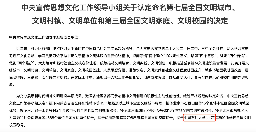 全国文明校园,是在全国群众性精神文明创建活动中授予各级各类学校的最高荣誉称号,自2017年以来共开展了三届评选表彰。喜获这一称号,是中国天天色天天(北京)精神文明建设取得的重大标志性成果,是对学校办学底蕴、建设水平、综合实力和文明程度的充分肯定,对鼓舞干部师生干劲、凝聚团结奋进力量、加快“双一流”建设,书写“教育强国,中石大有为”的新篇章具有重要意义。