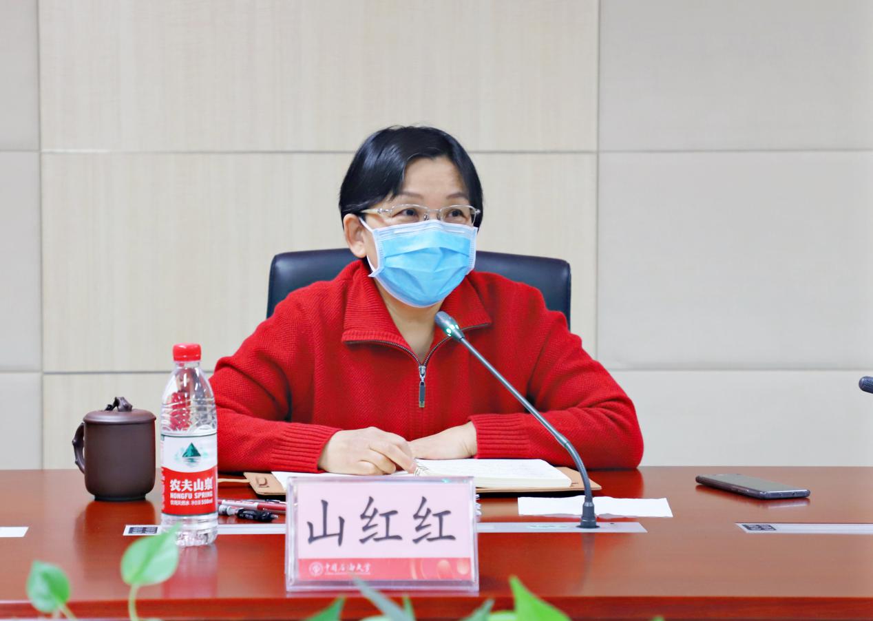 山红红对学校疫情防控工作特别是战“疫”一线教职工工作给予了充分肯定,对全校师生为战“疫”作出的贡献表示感谢。对于今年的重点工作,山红红提出五点要求。一是思想认识到位,要深入学习贯彻落实党中央、国务院决策部署,按照教育部、北京市具体要求,统筹做好疫情防控和学校事业发展各项工作;二要克服困难、把握节奏、扎实推进,确保年度重点工作圆满完成;三要发挥主观能动性,围绕学校中心工作,创造性地开展工作;四要坚持思想和工作的底线思维,确保特殊时期各项工作不打折扣;五要提高站位、积极参与、全力做好定点扶贫工作,为决胜全面建成小康社会贡献中石大力量。