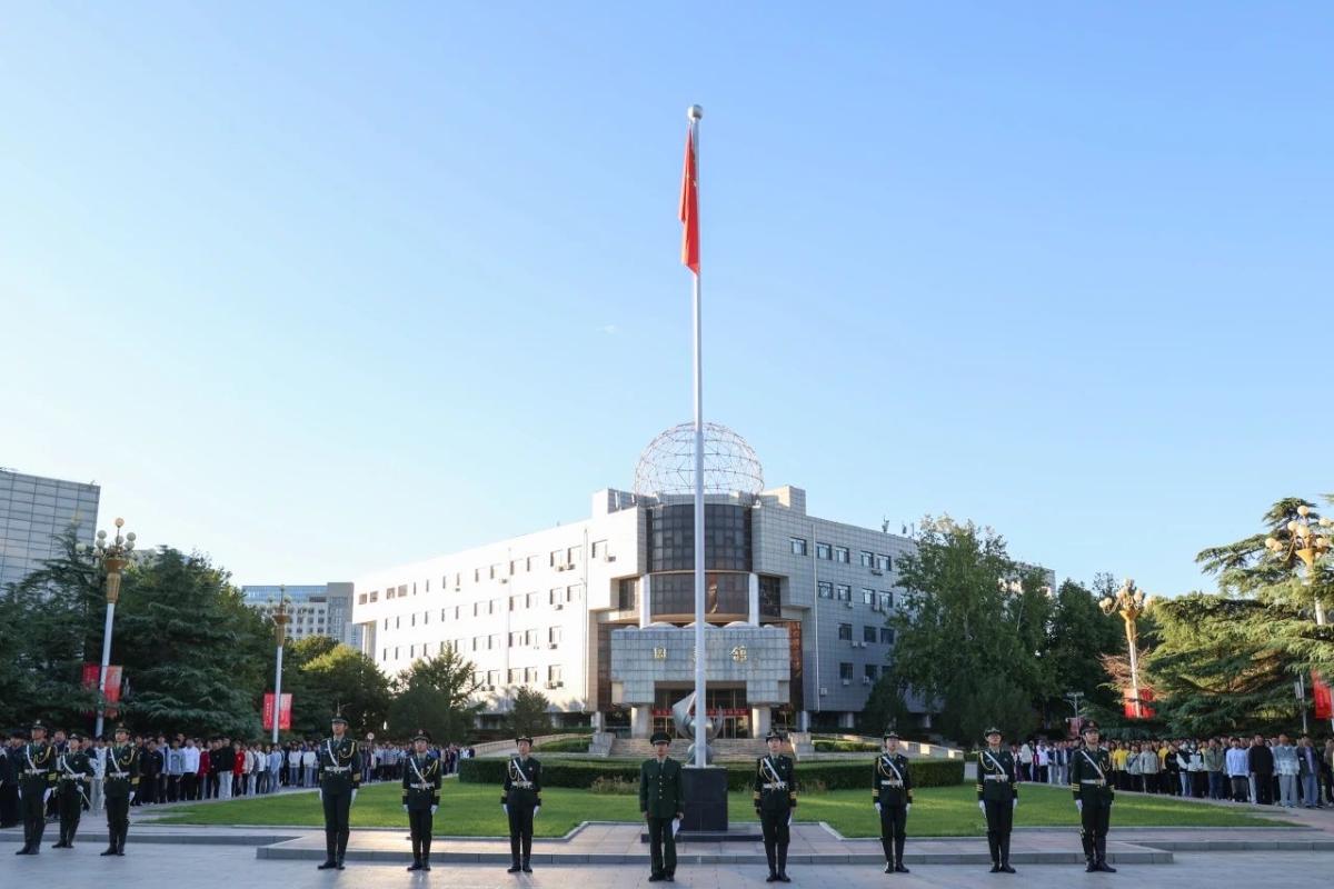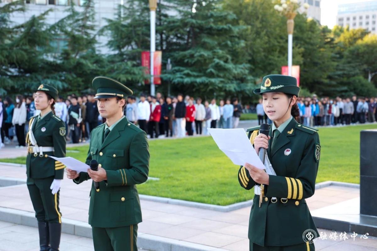 当日清晨,学校在北校门广场举行了隆重的升国旗仪式和国旗下的演讲活动,进一步弘扬爱党爱国精神,引领广大学子树立为祖国为人民永久奋斗、赤诚奉献的坚定理想。全体师生齐声高唱《义勇军进行曲》和《我和我的祖国》,共同表达对伟大祖国的深情热爱和诚挚祝福。