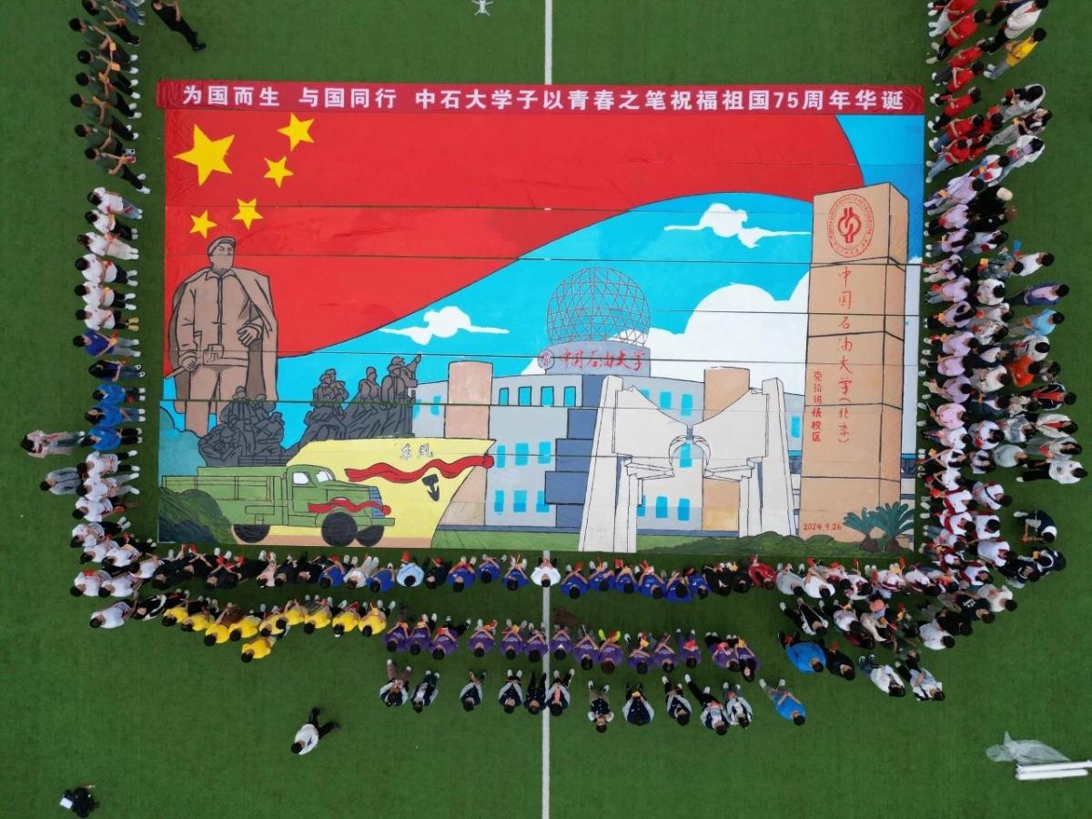 在举国欢庆新中国75周年华诞之际,中石大校园花团锦簇、彩旗飘扬,处处洋溢着节日的气氛。学校举行了丰富多彩的爱国主义主题教育活动,广大师生以多种方式祝福伟大祖国,表达能源报国的志向与决心。中央电视台、教育部官微等媒体进行了集中报道。