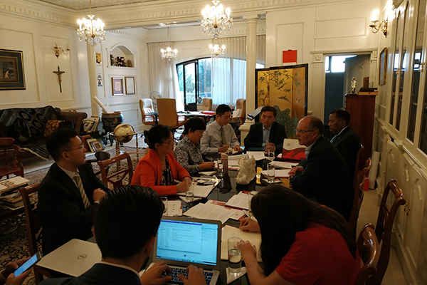 在厄瓜多尔期间,山红红一行还访问了中国驻厄瓜多尔大使馆、中国驻瓜亚基尔总领事馆。大使馆临时代办王新明、总领事张滔分别会见了山红红一行,并就中石大孔子学院发展、与当地开展教育合作和人文交流等话题进行了深入交流。山红红一行还与厄瓜多尔思邈维华国际学校创办人、厄瓜多尔教育与产业协作促进会会长梅炬铭会面,探讨了有关合作事宜。