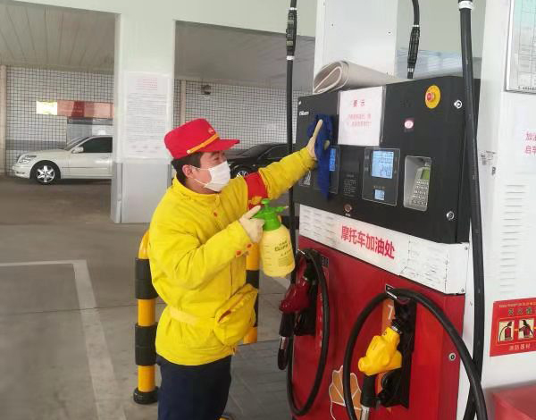 昌平站于1月22日接到内保通知,要求站内工作人员必须佩戴口罩服务,公司立刻意识到疫情的严重性,第一时间采取防控措施通过多方渠道购买口罩、消毒液、酒精棉等防护用品保障了加油站内的消毒防护需求。