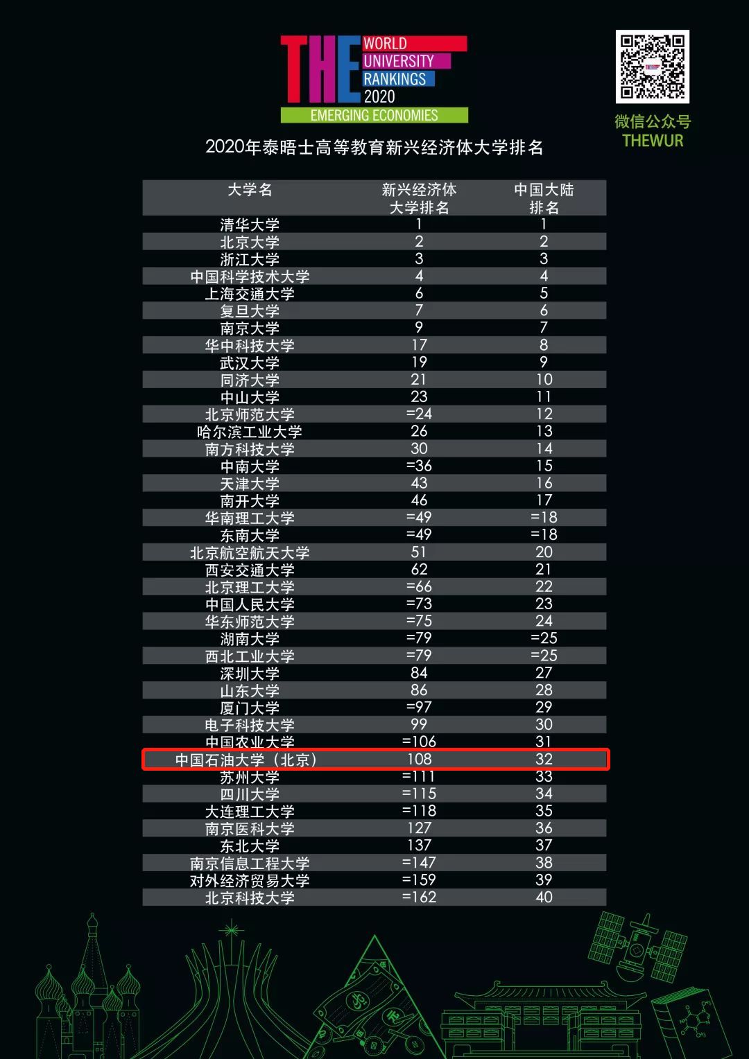 泰晤士高等教育新兴经济体大学排名结果发布 中石大名列中国大陆第32位