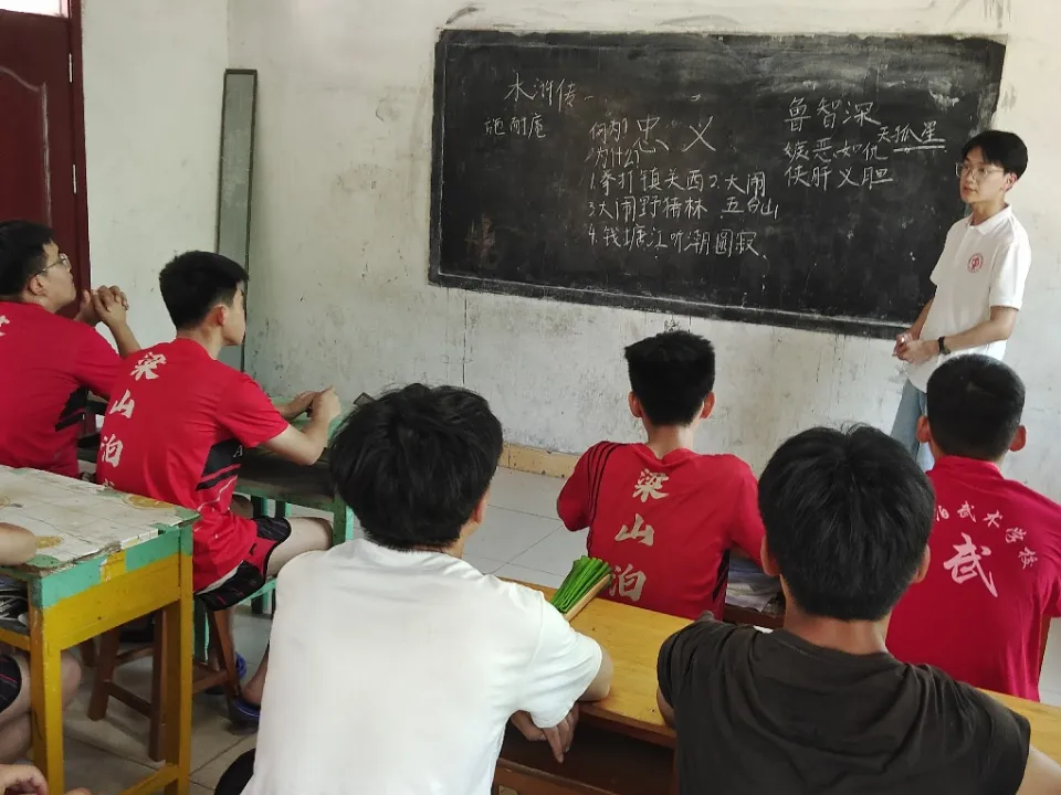 实践团走进梁山泊武术学校,通过采访非遗传承人、编排武术节目、设计武校校徽、开展“水浒故里・忠义梁山”故事会等活动,助力非物质文化遗产梁山梅花拳的传播与传承,进一步增强学生文化自信。