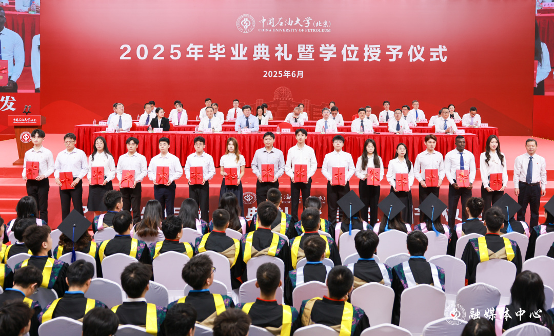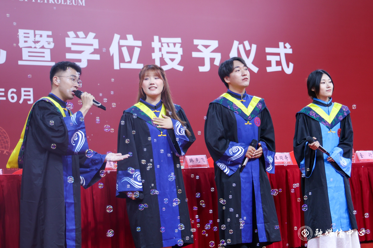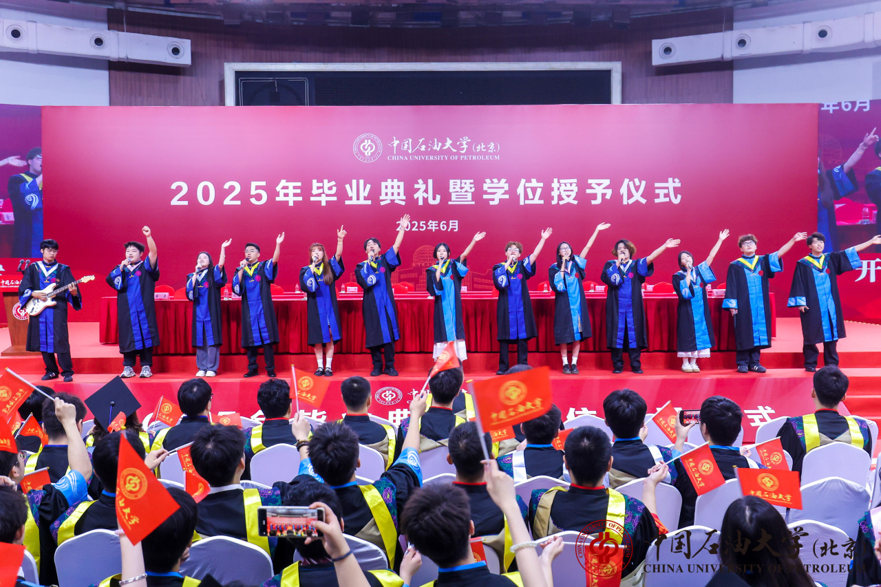 典礼在《我为祖国献石油》的嘹亮歌声中圆满落幕。典礼结束后,学校举行了2025届毕业生学位授予仪式。