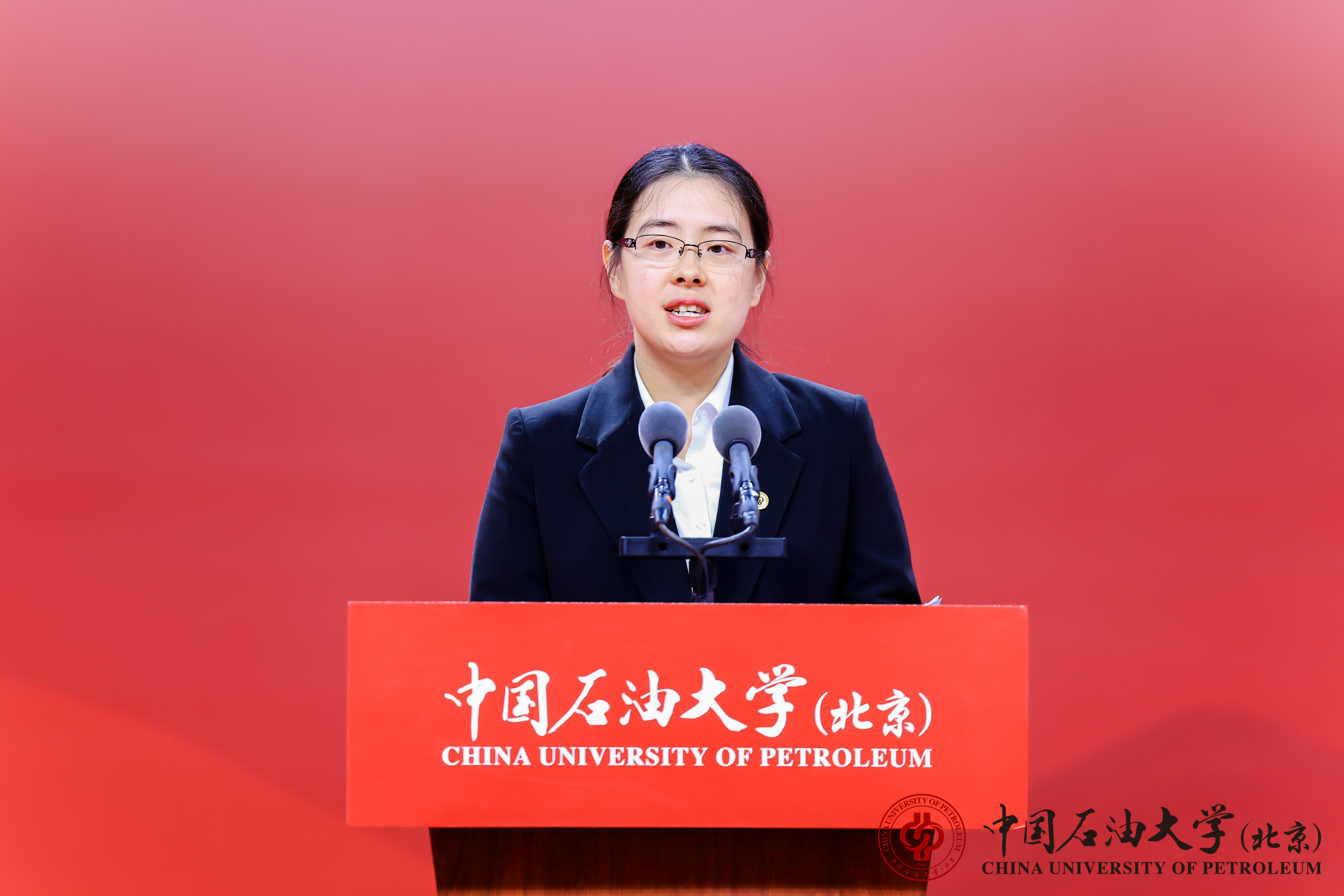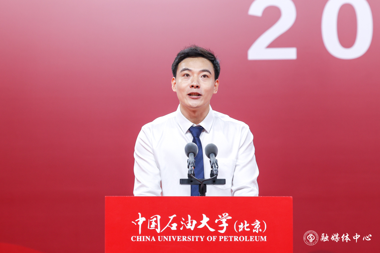 校友代表、现就职于中国石油勘探开发研究院的张婧雅结合自身工作奋斗经历,分享成长感悟,勉励毕业生们心怀感恩、坚定信念,怀揣梦想、砥砺前行,立志报国、扎根一线,在奉献中绽放青春光彩,在奋斗中书写强国有我的辉煌篇章。