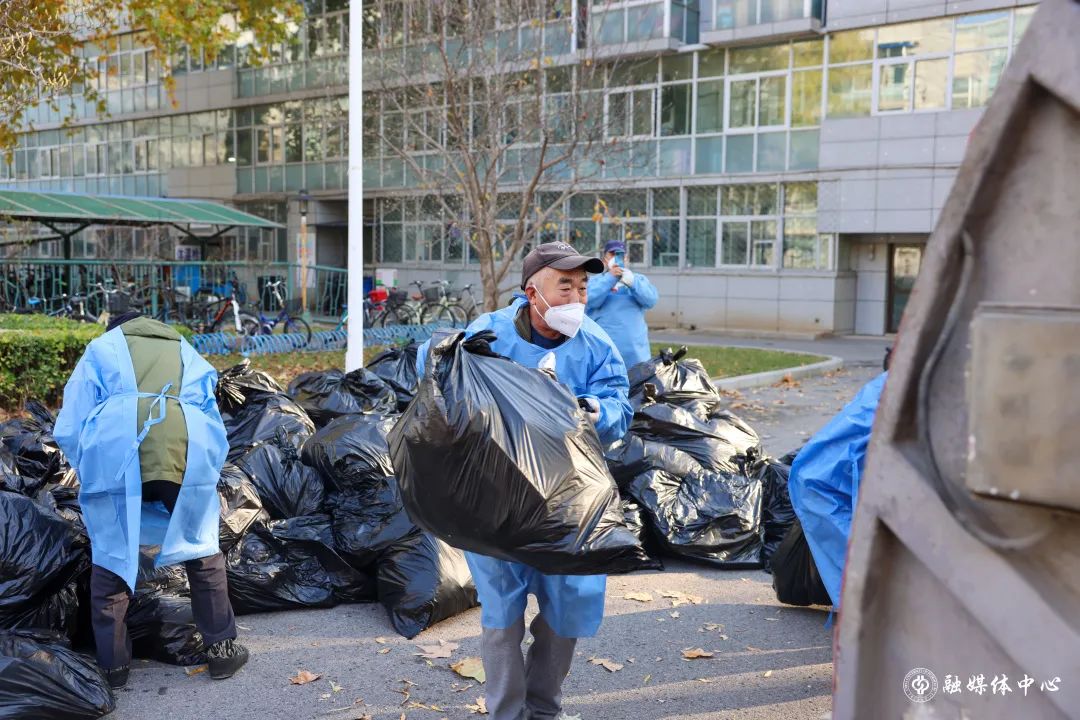 1110日深夜12点至凌晨2点,公寓管理服务中心组织10多名员工卸运床上用品400多套,用仅有的4辆小三轮车,一趟一趟从东门搬运至体育馆。12日晚11点至凌晨2点,20多名员工搬运防疫物资,凌晨2点半至4点半,冒着大雨到东校园五教,搬卸学校新购置的400套备用床。他们都已不年轻,有的两鬓斑白,有的腰腿不好,但任务面前没有人退缩。他们每日清理公寓楼内涉疫垃圾,并用专业用具清运出楼、及时消毒。