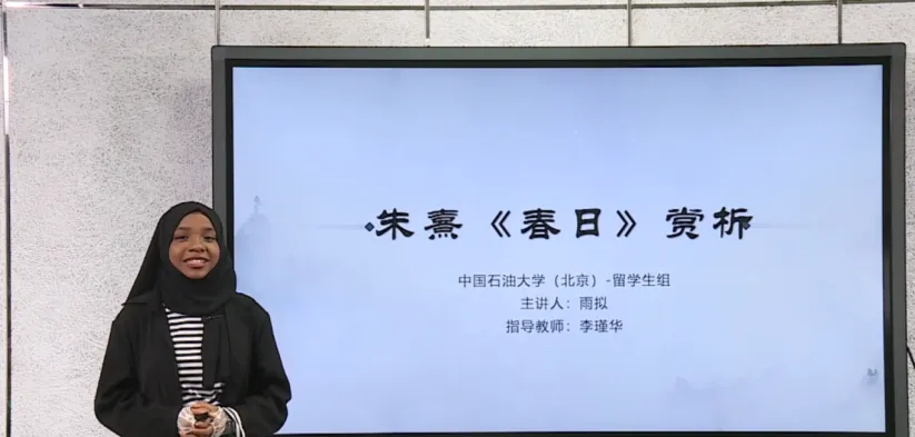 “等闲识得东风面,万紫千红总是春。”在大赛中,雨拟选择解析《春日》,希望通过阐释朱熹笔下春景的旖旎,抒发她对中国欣欣向荣景象的感怀。决赛时,雨拟结合自身经历,以热情洋溢的演讲《一个苏丹女孩读唐诗的快乐》打动了评委。
