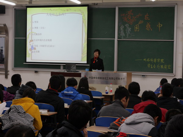 讲座上,王欢首先对比了中日两国在思想、政治、教育、心理等方面体现出来的文化差异,并重点讲解了在青年男女“恋爱观”问题上的中日文化差异。对在当前中国社会背景下,青年人在恋爱中所出现的“拜金”、“剩男”、“剩女”等社会现象从传统文化角度进行了阐释,向大学生提出了继承和发扬中国传统文化,加强和提升思想道德修养的要求。