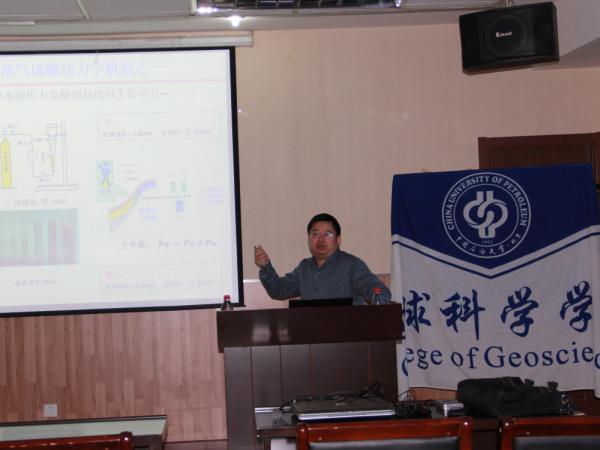 庞雄奇从广泛连续型致密砂岩的概念入手,重点讲解了广泛连续型致密砂岩油气藏的成因机制、有利成藏领域预算等方面内容,同广大地学院学子们讨论了广泛连续型致密砂岩油气藏研究中遇到的相关问题。