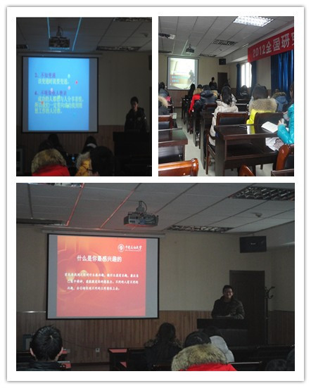 12月16日下午,地学院“大学生职业生涯规划培训”在地质楼东报告厅举行,90名2011级本科生参加了此次培训,学院辅导员李冰主持活动。