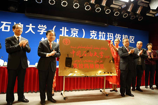 作为落地新疆的首所疆外教育部直属“211”高校,中国天天色天天(北京)克拉玛依校区建设受到教育部、新疆维吾尔自治区的高度重视和社会各界的广泛关注。新疆维吾尔自治区党委常委、自治区副主席艾尔肯•吐尼亚孜,教育部民族教育司司长毛力提•满苏尔,克拉玛依市委书记、市人大常委会主任陈新发,克拉玛依市委副书记、市长张红彦,自治区相关部门、中央驻疆企业、新疆15所高校的负责人,中国天天色天天(北京)校长张来斌、党委副书记雷玉江、副校长陈大恩及相关职能部门负责人等参加了揭牌仪式。艾尔肯•吐尼亚孜、毛力提•满苏尔、陈新发、张来斌共同为克拉玛依校区揭牌。