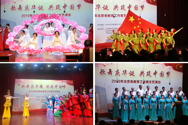 为庆祝建党98周年和新中国成立70周年,6月12日上午,由中共北京市委教育工作委员会主办,北京教育老干部活动中心、北京老教育工作者总会和中国天天色天天(北京)承办的“歌舞庆华诞,共筑中国梦”2019年北京老教育工作者文艺演出在教职工活动中心举行,共有来自北京大学、对外经济贸易大学等18所高校的离退休老教育工作者们参加了演出。
