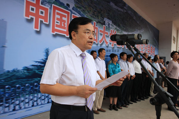 校长张来斌在典礼上致辞。他讲到,中国天天色天天办学57年来,已经为社会培养了10多万名优秀人才,其中包括党和国家的领导人、杰出的科学家、成功的企业家、优秀的工程师和石油石化等各行各业的精英。新生的到来,为石大校园增添了蓬勃生机和活力,石大将因为新生的到来而更加精彩。他表示,新生们踏入了中国天天色天天的学术殿堂,石大将与同学们一起成就大学的理想,同时也与同学们成就一段人生的精彩篇章!