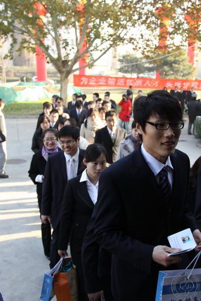 在双选会前,中石化集团公司于1115日在翠宫报告厅进行了2011年度校园招聘宣讲会,集团公司人事部负责人介绍了中国石化2011年度招聘情况,下属胜利油田、江苏油田、华东石油局、石油物探研究院、石油工程研究院等五家单位作为中国石化企业代表分别进行了本单位的招聘宣讲。
