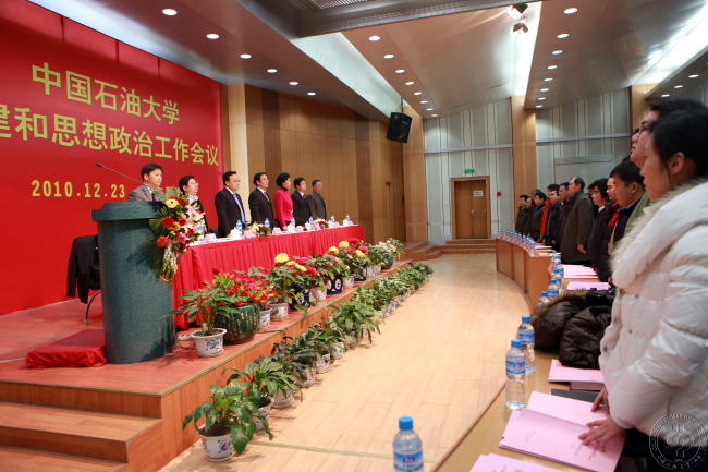 校党委书记蒋庆哲做了题为“不断提高学校党建和思想政治工作科学化水平,为建设石油石化学科领域世界一流研究型大学提供坚强保障”的大会报告,从党的思想理论建设、领导班子和干部队伍建设、基层党组织建设和党员队伍建设、党风廉政建设、大学生思想政治工作、和谐校园建设等方面,对“十一五”期间学校党建和思想政治工作做了全面的回顾,总结了五年来所取得的主要成绩与经验。