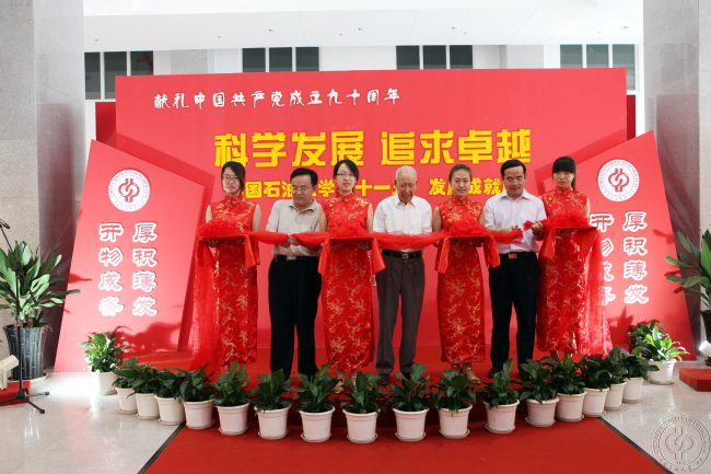党委书记蒋庆哲在致辞中说,“十一五”是学校发展历程中至关重要的五年,是为建设“石油石化学科领域世界一流研究型大学”打下坚实基础的关键五年。五年间,全校师生员工团结一致,开拓进取,使学校的办学实力和办学水平明显提升,社会影响力不断扩大。“十一五”发展成就展生动展示了学校“十一五”期间各项事业所取得的辉煌成就,将极大地鼓舞全校师生员工更加信心百倍地迈向大有可为的“十二五”。仪式上,校长张来斌向离退休教师代表和学生代表颁发了作品入展证书。