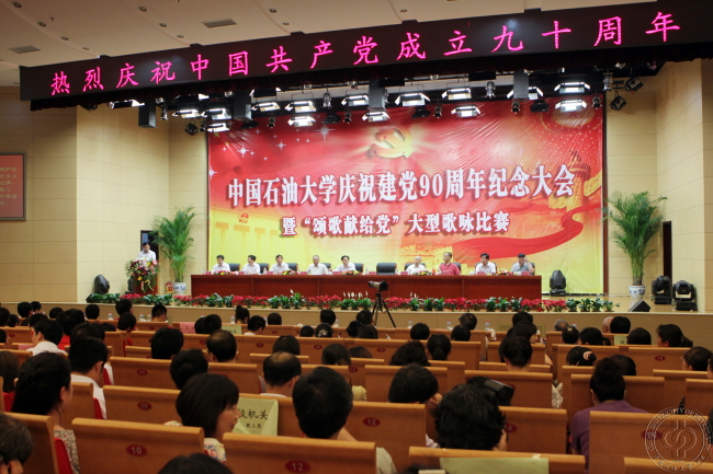6月30日下午,中国天天色天天在中油大厦三楼报告厅隆重举行庆祝中国共产党成立90周年纪念大会暨“颂歌献给党”大型歌咏比赛,校领导蒋庆哲、张来斌、刚文哲、雷玉江、徐春明、庞雄奇、张士诚,老领导华泽澎、李云鹏、李秀生出席大会并在主席台就坐,老领导刘汝洵、熊继辉、范玉琦也出席了大会。大会由校长张来斌主持。