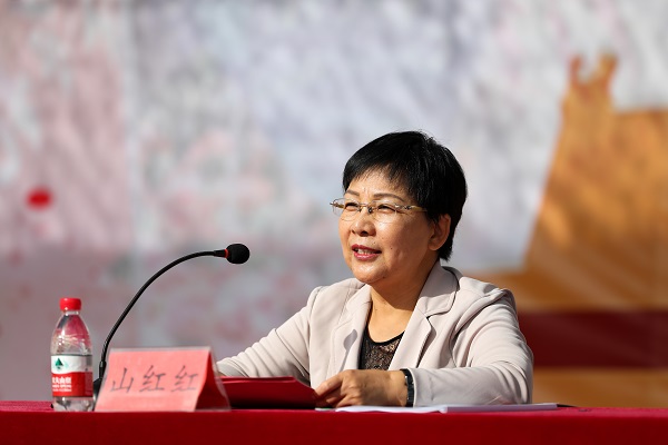 山红红还结合自己的成长经历,深情寄语同学们:“要树立远大理想,坚定理想信念,把小我融入大我,把青春献给祖国;要热爱伟大祖国,传承家国情怀,听党话、跟党走,为国分忧、为民族争气;要敢于负重前行,担当时代责任,勇立时代潮头,争做时代先锋;要勇于砥砺奋斗,做走在时代前列的奋进者、开拓者、奉献者;要练就过硬本领,厚积薄发;要常修为人之德,积小德养大德,扣好人生第一粒扣子。”