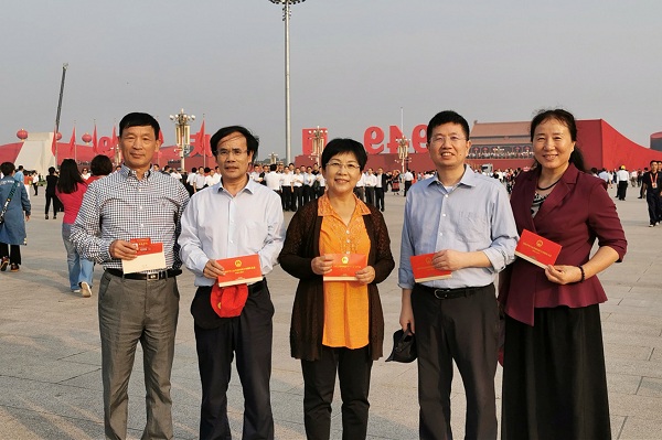 北京市师德先进个人、经济管理学院张宝生教授说,有幸受邀参加国庆观礼,这是我一生中最值得骄傲的时刻。广场上的两条红色飘带,在我眼前似乎延展出万山红遍层林尽染的锦绣河山,威武的受阅方队令我震撼,隐约看到了长征路上闪闪发亮的红星,淮海战役千军万马的奔腾,渡江百万雄师的劈波斩浪,保和平卫祖国的志愿军的雄赳赳气昂昂。从站起来、富起来到强起来,伟大祖国发展蒸蒸日上,让我更加坚信以习近平同志为核心的党中央一定能带领我们实现“两个一百年”的奋斗目标和中华民族伟大复兴的中国梦!