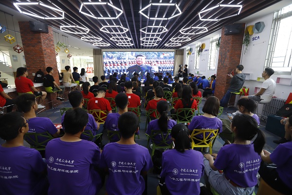 学校党委高度重视收听收看庆祝大会直播工作,学校在学生活动中心、教室、食堂等设置了集中收看场地,各学院以班级、宿舍为单位组织线上线下观看直播。
