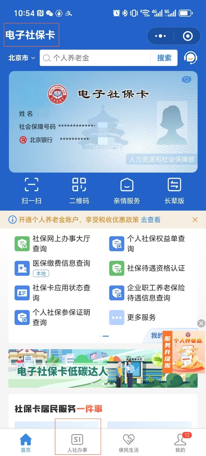 1. 微信、支付宝小程序中找到“电子社保卡”,并按提示注册或登录,找到“人社办事”。