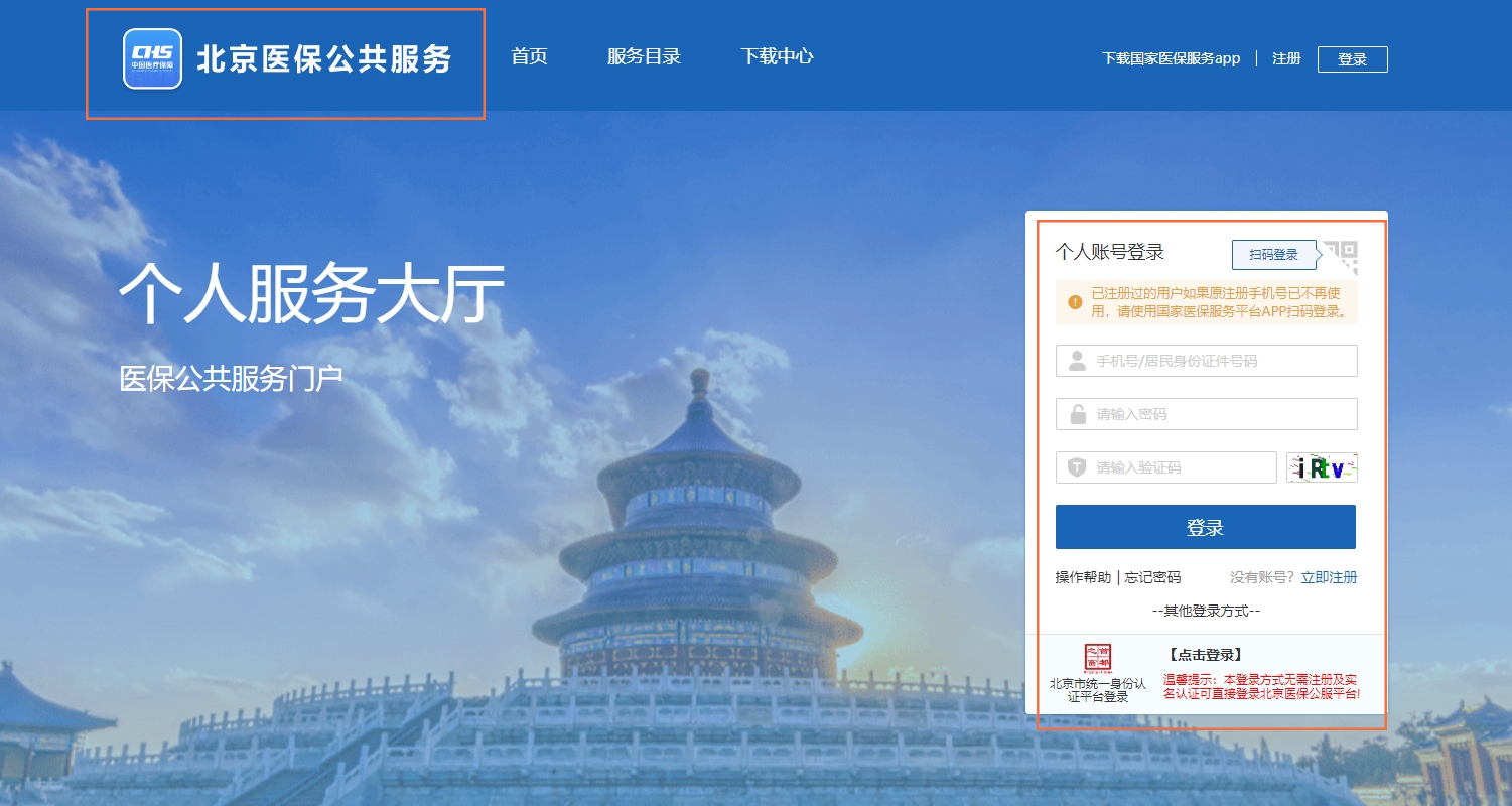 1.登录“北京医保公共服务”平台,选择“个人登录”,按要求登录或注册