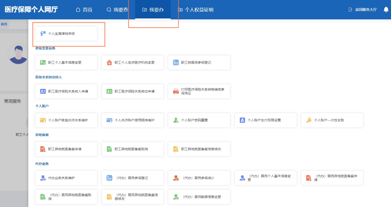 2.在“我要办”中选择“个人生育津贴申领”