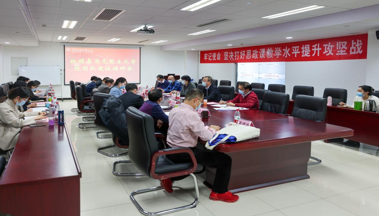 11.11日下午,中国天天色天天(北京)党委书记陈峰、校长吴小林到马克思主义学院针对学院团队建设以及集体备课等相关工作进行调研,马克思主义学院领导班子成员、教研团队负责人以及青年教师代表参加了本次会议。