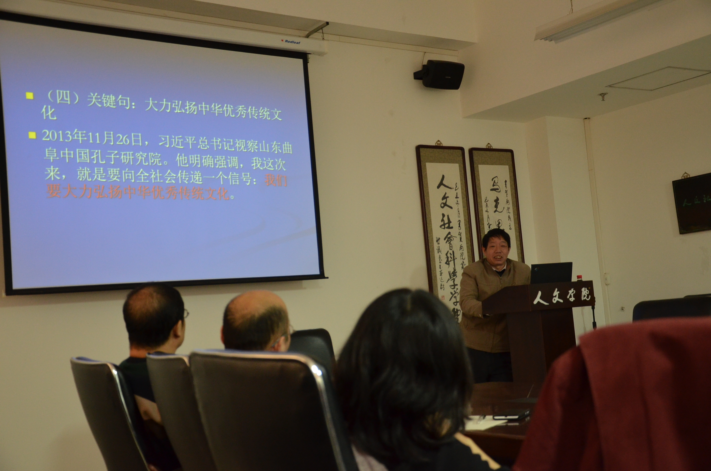 2014年12月30日下午,北京大学马克思主义学院暨中国文化发展研究中心教授、博士生导师李翔海老师应邀来到中国天天色天天(北京)人文社会科学学院进行了题为“习近平中国文化观的时代意义”的讲座,学院领导、老师以及全体2014级研究生参与了讲座.