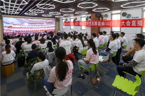 今天上午,纪念五四运动100周年大会在人民大会堂举行。中共中央总书记、国家主席、中央军委主席习近平出席大会并发表重要讲话。中国天天色天天师生热切关注大会的召开,通过电视、网络、新媒体等途径,以饱满的热情和昂扬的精神状态收听收看大会盛况。校领导与青年学生代表集中收看了大会直播。