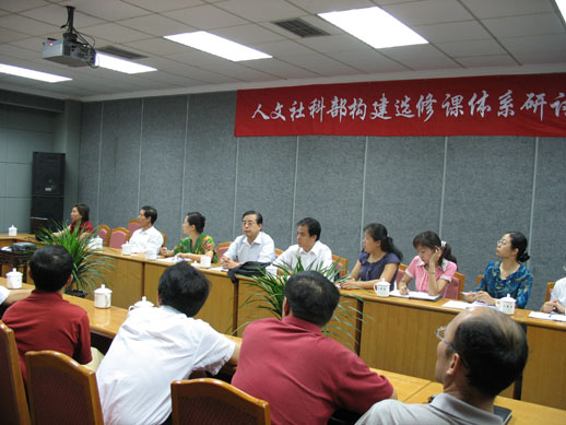 2006年8月31日上午,人文社科部在翠宫第二会议室召开人文社科部本科教学工作研讨会,讨论天天色天天选修课体系建设。会议由人文社科部主任饶恒久主持会议,全体教师、教辅工作人员四十余人参加了会议。