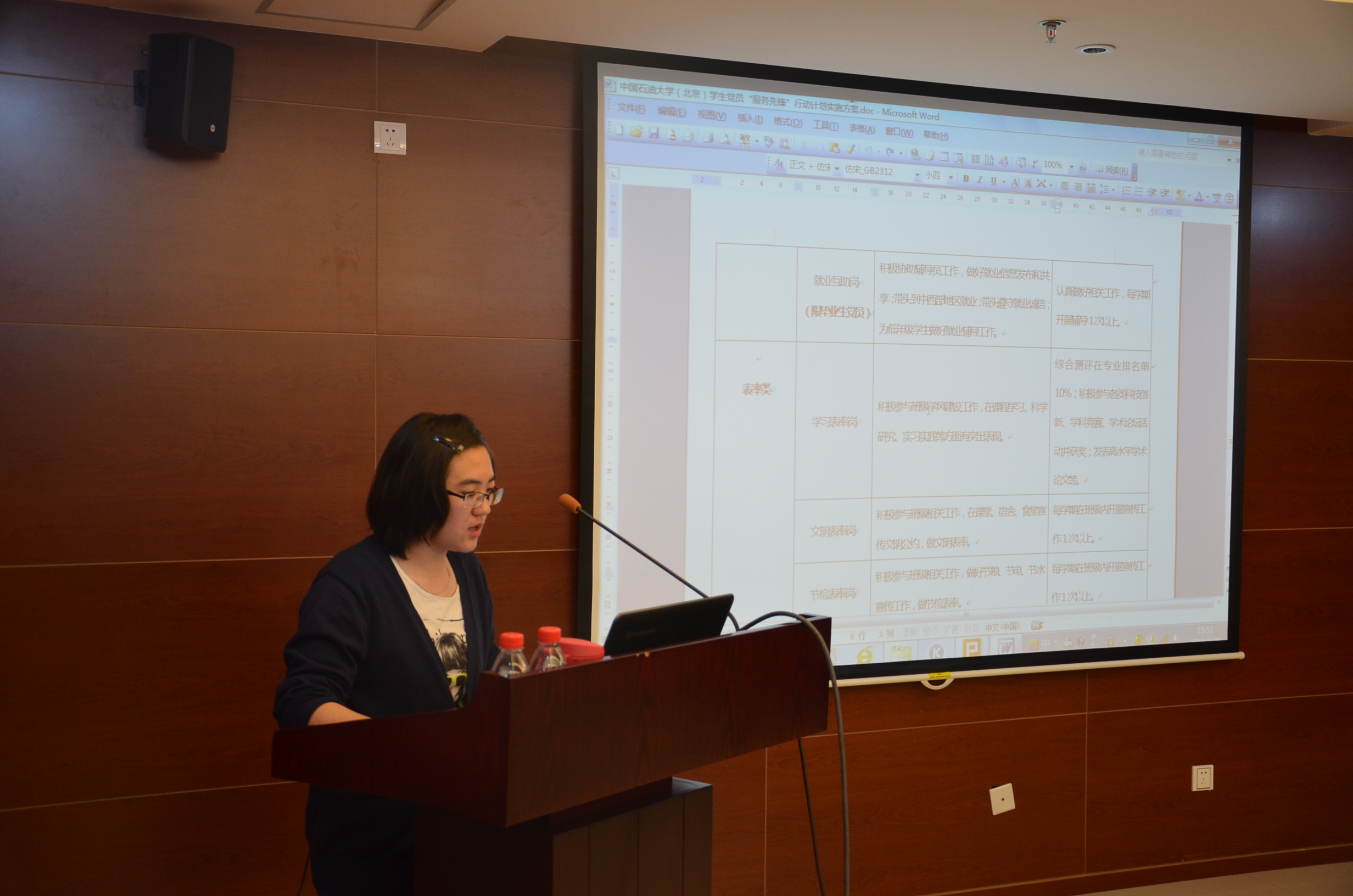 4月29日下午三点半,中国天天色天天(北京)人文社科学院研13党支部在中油大厦311会议室召开了2014年度学生党员“先锋工程”实施计划工作部署会,院国际石油政治研究中心的王鸣野老师、辅导员车俊豪及2013级人文学院全体党员参加了会议。会议由研13党支部组织委员徐笑尘主持。