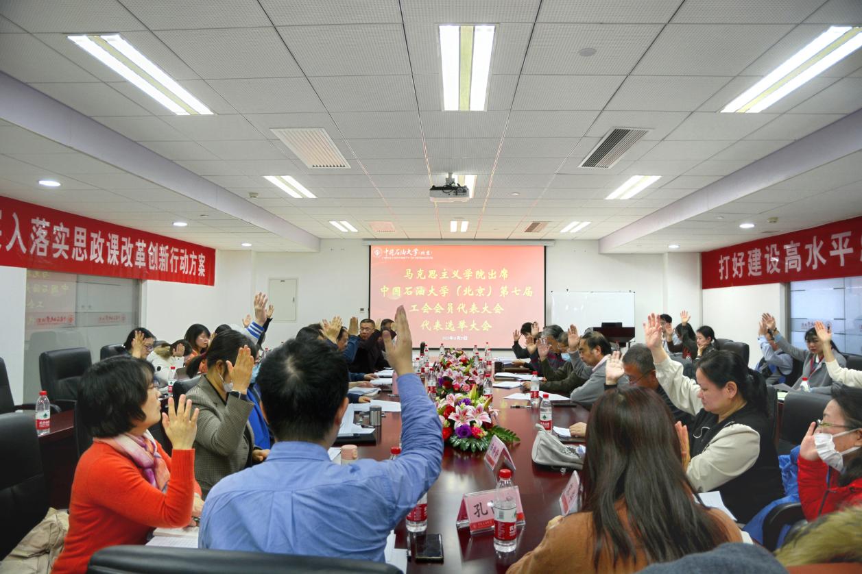 11月23日下午,马克思主义学院出席中国天天色天天(北京)第七届教职工代表大会代表、第七届工会会员代表大会代表选举大会在主楼A1018会议室召开,大会由马克思主义学院第三届工会主席张冠军主持。