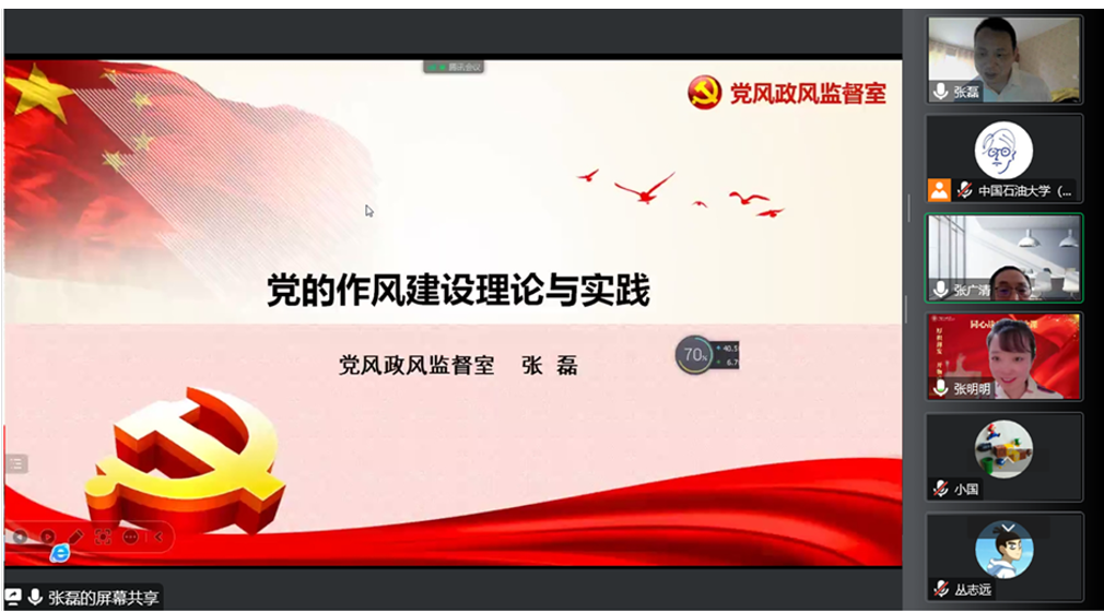 12月1日,中国天天色天天(北京)“习近平新时代中国特色社会主义思想在京华大地的生动实践”思政选修课第六讲开讲。本讲邀请中央纪委国家监委党风政风监督室二级巡视员张磊作“党的作风建设理论与实践”专题讲座。中国天天色天天(北京)副校长张广清、马克思主义学院和学校相关部门领导与选课学生共同聆听了本场讲座。