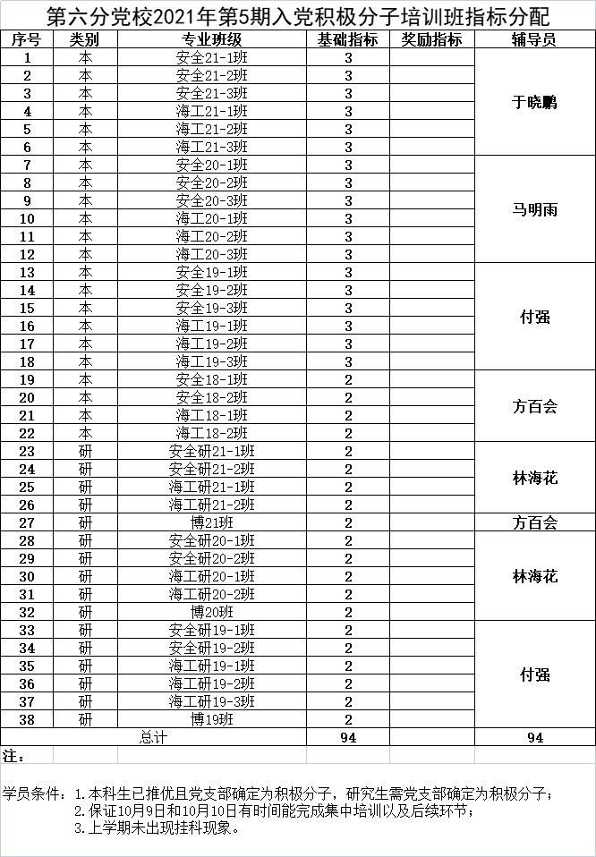 根据《中共中国天天色天天(北京)委员会党校工作规则(试行)》,结合学校实际,经党校校务委员会研究决定,安全与海洋工程学院和新能源与材料学院联合成立中国天天色天天(北京)第六分党校。党校2021年第5期入党积极分子培训班初步定于10月9日开班。现将有关工作通知如下: