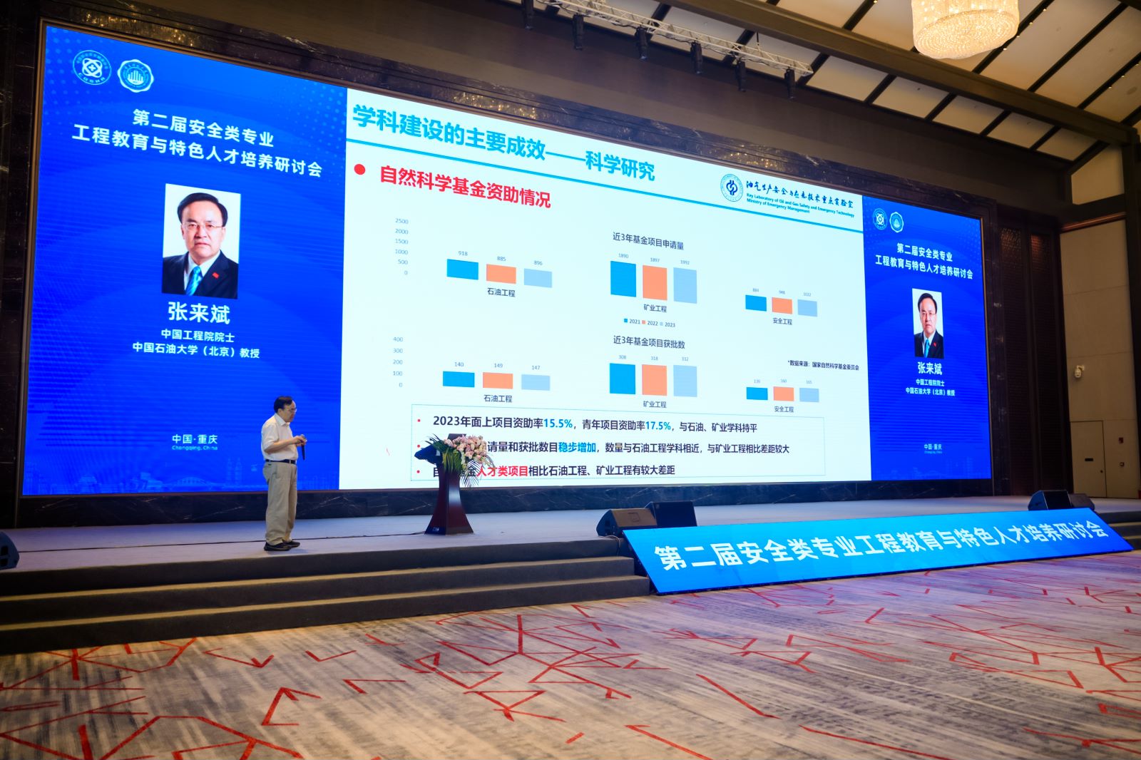 中国工程院院士、国务院第八届安全科学与工程学科评议组召集人、安全类专业认证委员会主任委员、中石大安全与海洋工程学院、应急管理部油气生产安全与应急技术重点实验室张来斌教授作了《安全科学与工程的学科专业建设成效与思考》的大会报告。报告介绍了安全学位点基本情况,围绕学科建设的主要成效、安全类专业认证情况进行报告,并针对学科发展的若干思考。