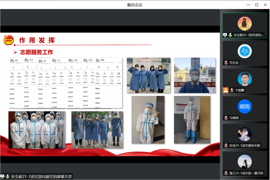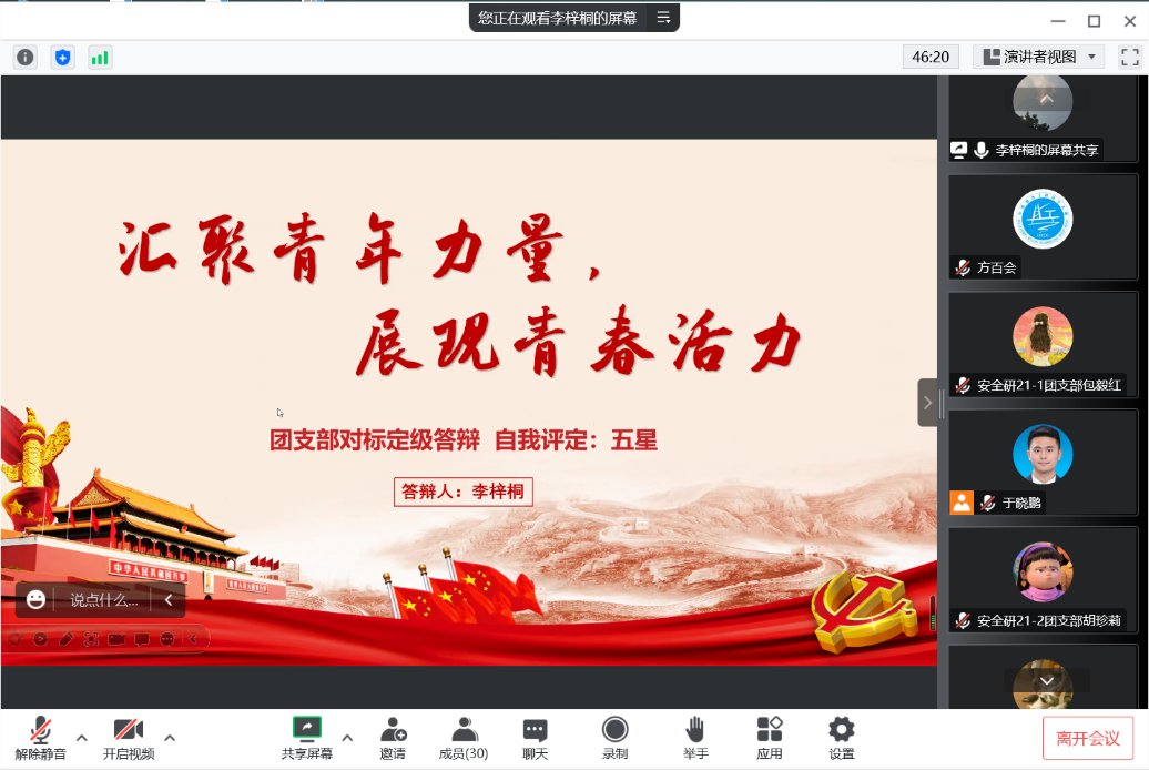 最后,方百会对各团支部一年来的工作表示肯定。她指出,2022年是不平凡的一年,在共青团成立100周年和党的二十大胜利召开的重要年份,各团支部在工作中能够积极克服疫情影响,带领广大团员积极进取、奋发图强,在学习、实践、志愿、生活等方面都取得了明显的进步。她表示,“对标定级”工作的有序开展促进了各团支部间的学习交流,希望各团支部能再接再厉,继续在今后的学习生活中发挥青年力量。
