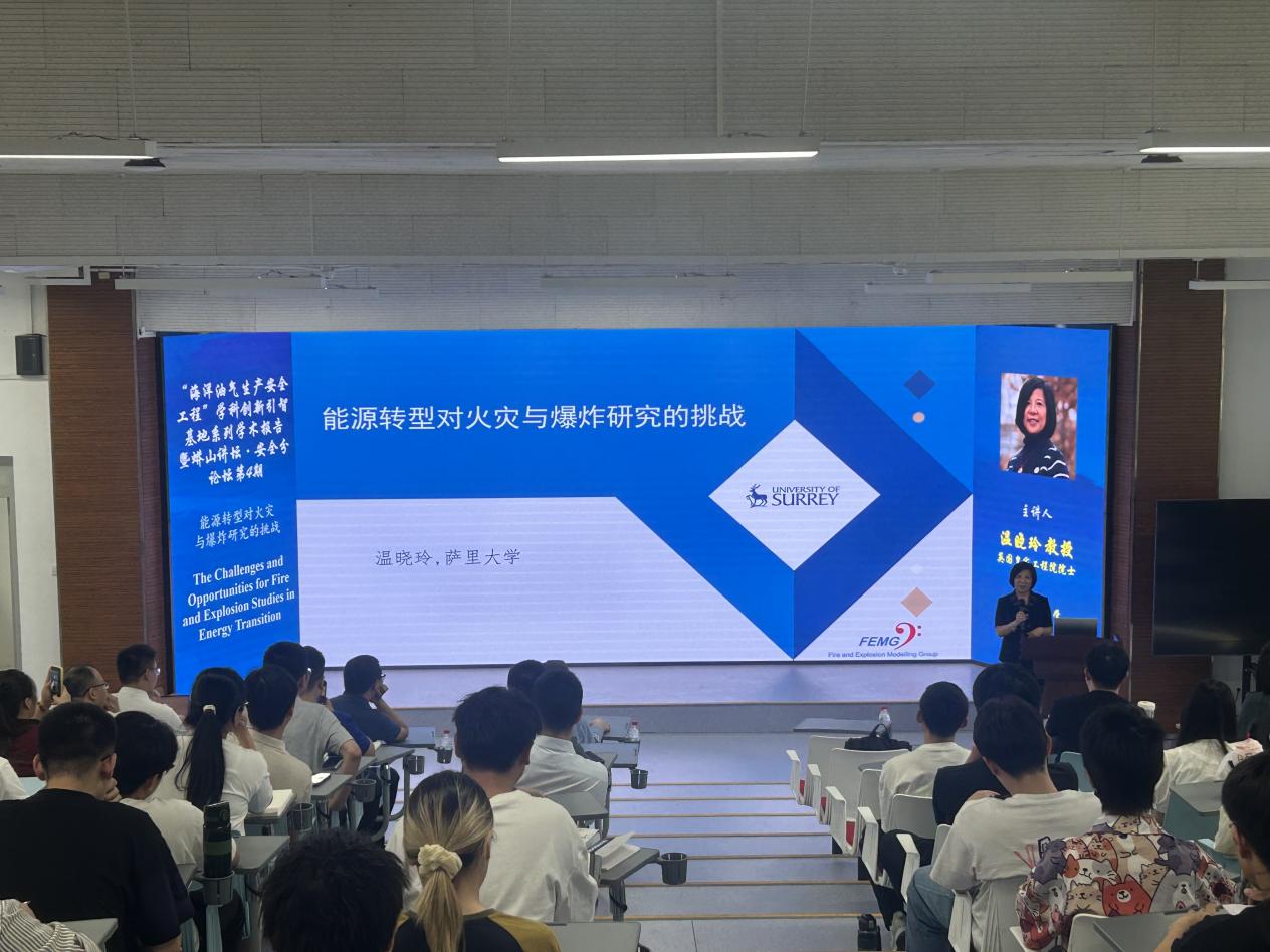 5月26日下午,应急管理部油气生产安全与应急技术重点实验室、国家市场监督管理总局油气生产装备质量检测与健康诊断重点实验室举办“海洋油气生产安全工程”学科创新引智基地系列学术报告暨蟒山讲坛(安全分论坛)第四期。英国皇家工程院院士、英国萨里大学温晓玲教授应邀作题为“能源转型对火灾与爆炸研究的挑战”的专题报告。中国工程院院士张来斌教授,学院安全工程系师生共70余人聆听报告。报告会由李云涛教授主持。