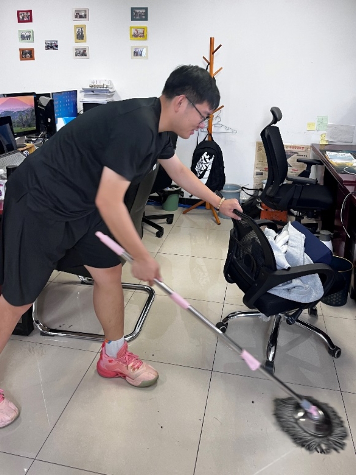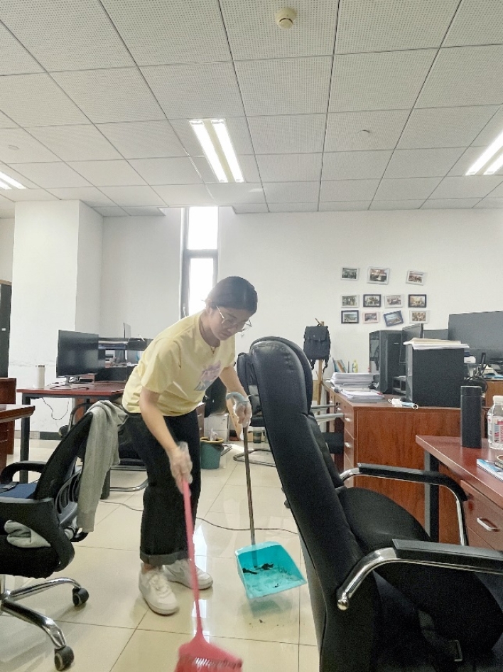 海洋工程第一党支部机械工程专业2022级硕士生张贝贝由衷感叹:今天我们党支部进行了办公室清扫活动,希望借此在维护办公室干净整洁的同时,锻炼大家的动手能力。在拍照过程中,我体会到了这份看似简单的工作中所包含的责任与意义--提升办公室卫生质量,为同学们创造一个良好的办公环境。