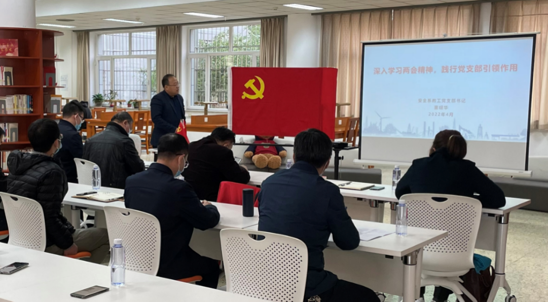 联学活动上,与会党员还为4月入党的两位同志集体过政治生日。安全工程系教工党支部书记董绍华作为4月入党代表带领全体党员重温入党誓词,回顾入党初心,并作“深入学习两会精神,践行党支部引领作用”的主题发言。
