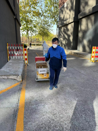 樊建春、王金江、段礼祥三位教授挺身而出,积极解决学生的需求,通过接力搬运的方式,克服重重困难,成功为100多名学生转运急需的电脑等滞留物品。由于疫情,樊建春、王金江两位老师被困在了北校区的办公室,在了解到100多位研究生急需滞留在办公室的笔记本电脑等物品后,樊建春、王金江第一时间与每位同学点对点的联系,主动承担起协调转运滞留物资的工作,与北校区的辅导员、志愿者一起打包、整理好了每位同学的物品。根据校园防控政策的要求,这些物品无法从北校园直接转移到东校园,安全工程系段礼祥教授得知后,立即前往北校区东门进行物资接力转运,搭建起物资在校区间的运输桥梁。三位教授与志愿者们齐心协力,在很短的时间内完成了百余件物品的转运,有效保障了同学们的科研学习、求职就业等工作。一件件成功转运的滞留物品,诠释着特殊时期师生们爱与爱的接力、心与心的相连。