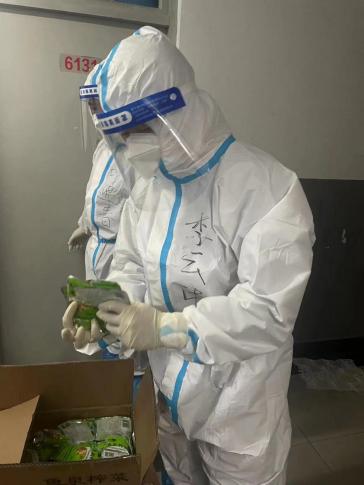 6号楼的疫情防控形势严峻,不时有同学被转运,当看到熟悉的老师们在给大家服务的时候,同学们的思想压力得到了缓解,对快速战胜疫情、恢复正常学习生活充满了信心。