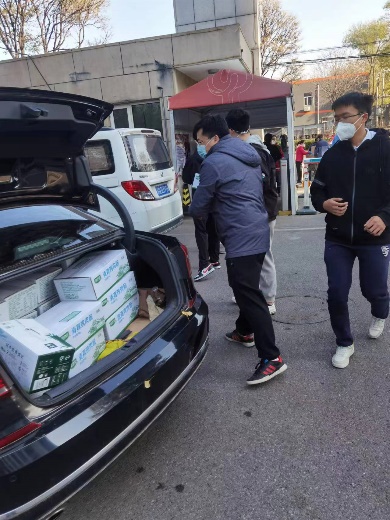 系主任、青年教师李云涛,在结束3天的居家隔离后,主动请缨,作为第3批志愿者进入东校园进行支援,承担汇才公寓6号楼的送餐任务。20箱泡面、8箱苹果、3箱牛奶、2箱梨…短短的一个多小时,李云涛便将中石油捐赠的物资扛到4层,并分发到每个宿舍门前。完成志愿者工作的同时,李云涛还时刻谨记作为研究生导师和本科生学业导师的职责,主动关心学生的需求和思想动态,及时解决学生生活、求职面试等方面的困难,用实际行动为同学们上了一堂抗疫思政课。